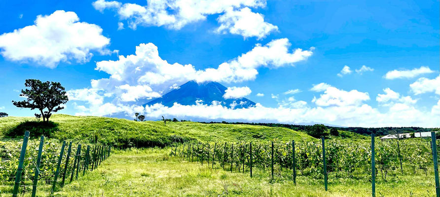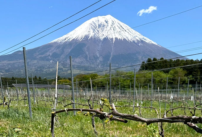 ワインに必要な“酸”を得るために重要なのは、標高の高い冷涼な土地。シンガーはその条件に合う土地を山梨県牧丘で見出し、いくつかの畑を所有。さらにぶどう栽培に適した新たな場所を求め、富士山を望む富士宮市・朝霧高原と人穴にたどり着きました。